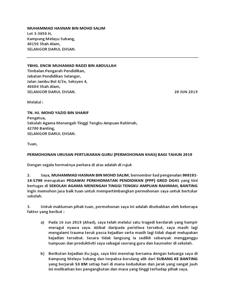 Surat Tukar Sekolah / Surat Permohonan Pertukaran Sekolah Tingkatan 6 Lihat Letter Website